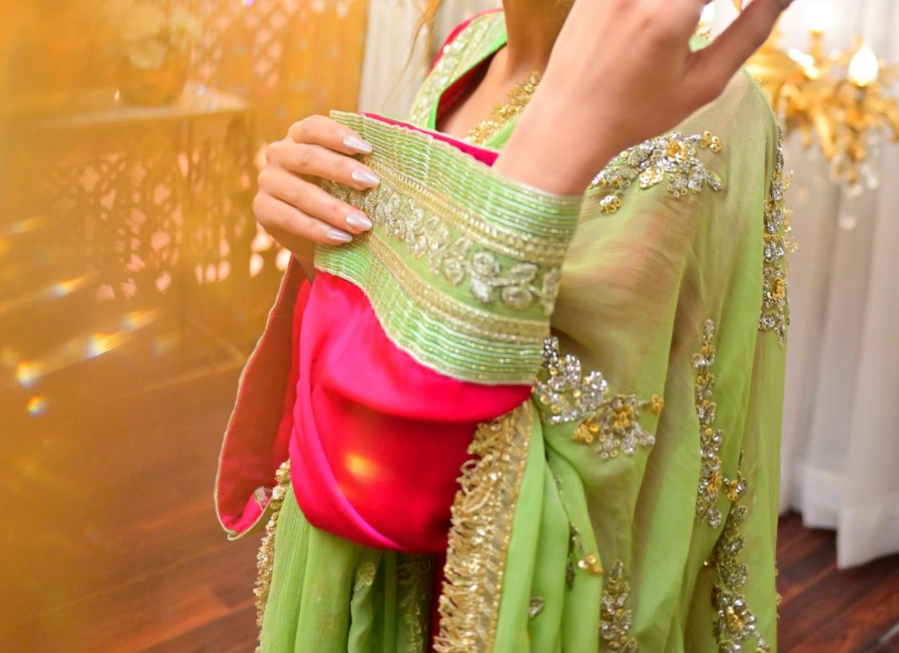 Fabric: Likely silk or chiffon (smooth texture, luxurious feel).